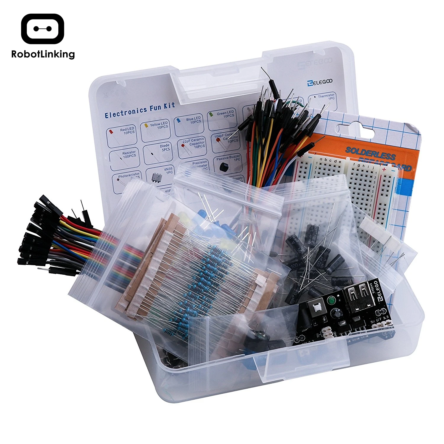 featuresElectronic DIY Kit Bundle with Breadboard Cable Resistor Capacitor LED Potentiometer 235 Items for arduino Crazy Deals..!!!
